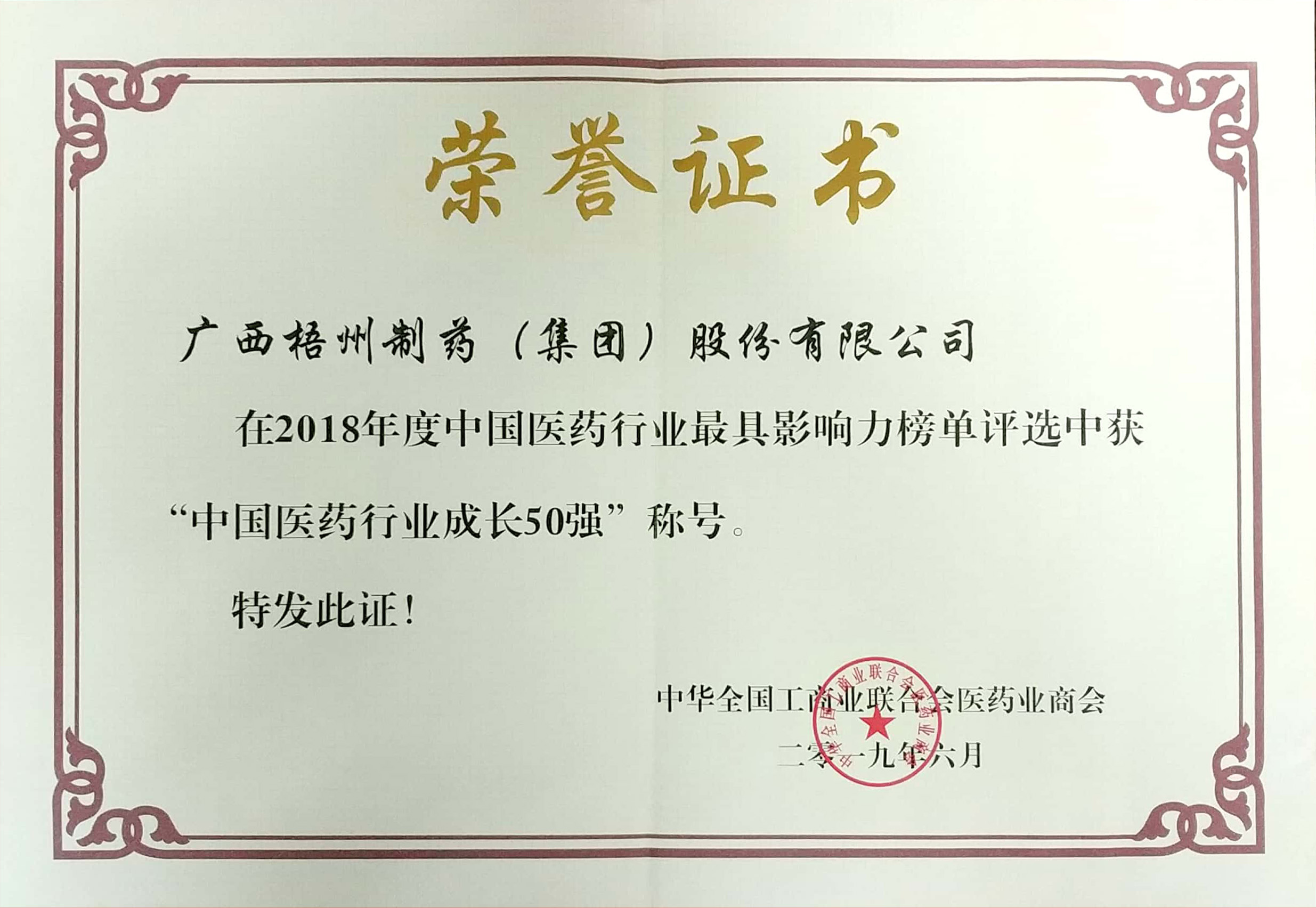 2018年度榮獲“中國醫(yī)藥行業(yè)50強稱號”