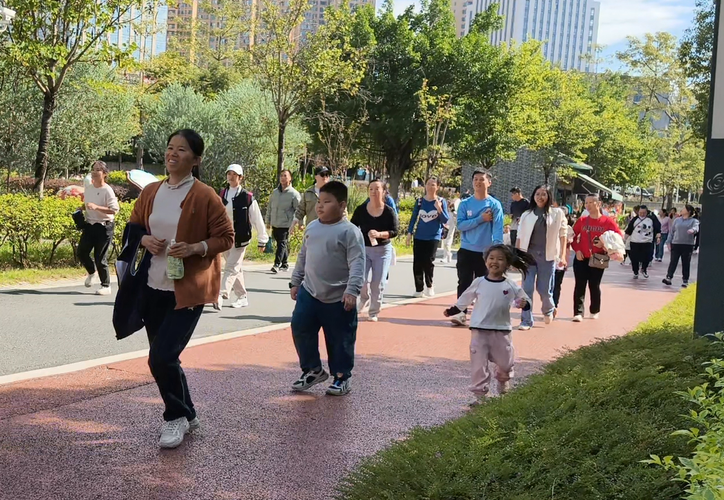 游戲環(huán)節(jié)結(jié)束后,工會(huì)組織開(kāi)展了親子環(huán)湖健走活動(dòng)。50余組家庭攜手出發(fā),沿澄澈的玫瑰湖畔漫步前行。為保障活動(dòng)安全有序,工會(huì)提前勘察路線,沿途設(shè)置3個(gè)補(bǔ)給站,志愿者貼心提供飲用水和小食品。家長(zhǎng)與孩子們或緩步交談,或駐足賞景,或拍照留念,將湖畔的美景與親子的笑顏一一定格,歡聲笑語(yǔ)縈繞在整個(gè)環(huán)湖路上。