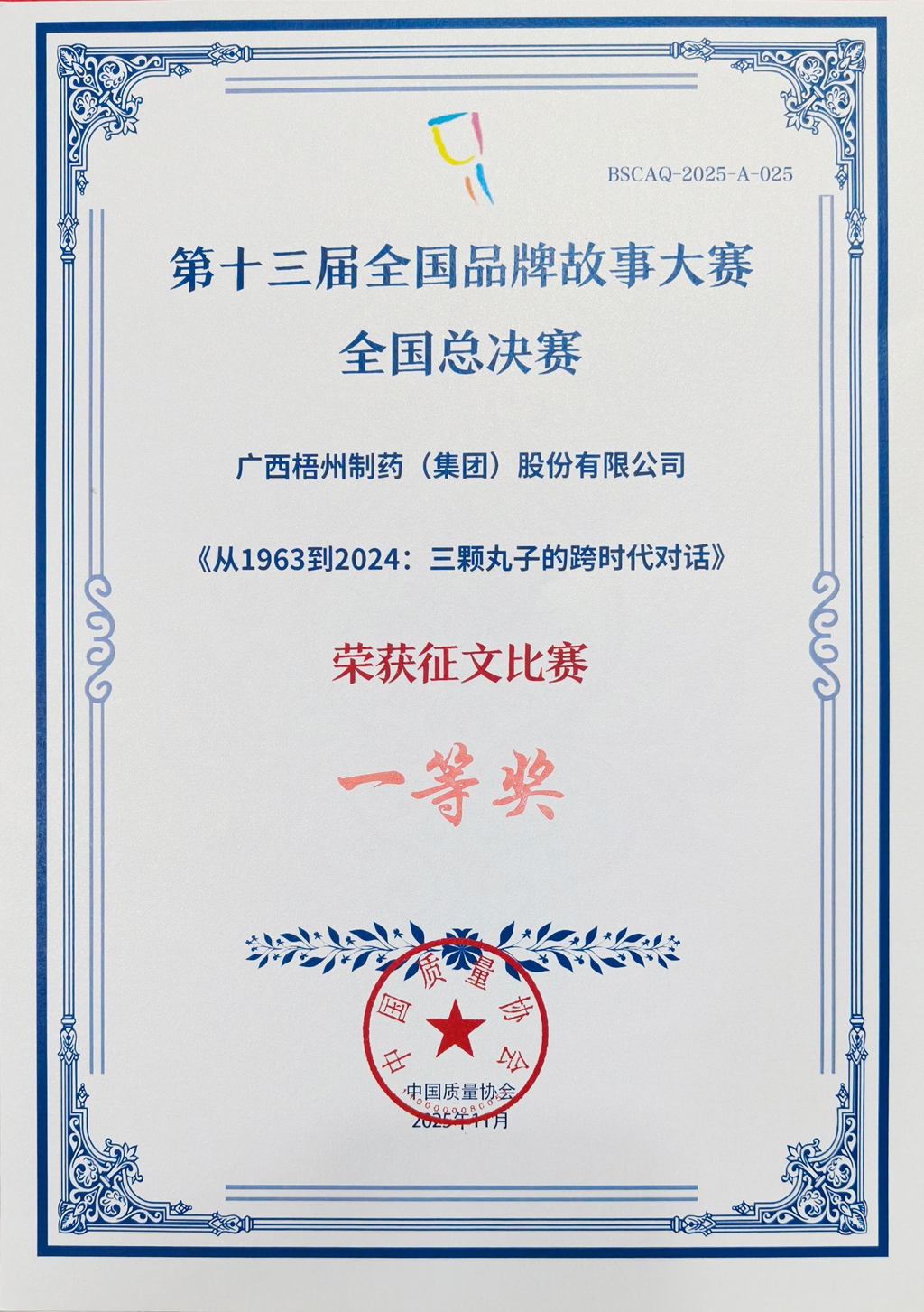 廣西梧州制藥(集團)股份有限公司征文(三顆丸子的跨時代對話)獲第十三屆全國品牌故事大賽全國總決賽征文比賽一等獎