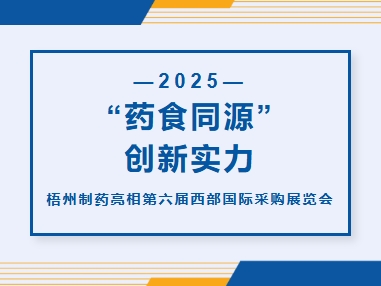 —2025—“藥食同源”創(chuàng)新實力梧州制藥亮相第六屆西部國際采購展覽會近日,由陜西省貿促會主辦的第六屆西部國際采購展覽會在西安國際會展中心隆重舉辦。本屆展會以“秦藥鏈動絲路·中醫(yī)賦能健康”為核心主題,精準聚焦中醫(yī)
